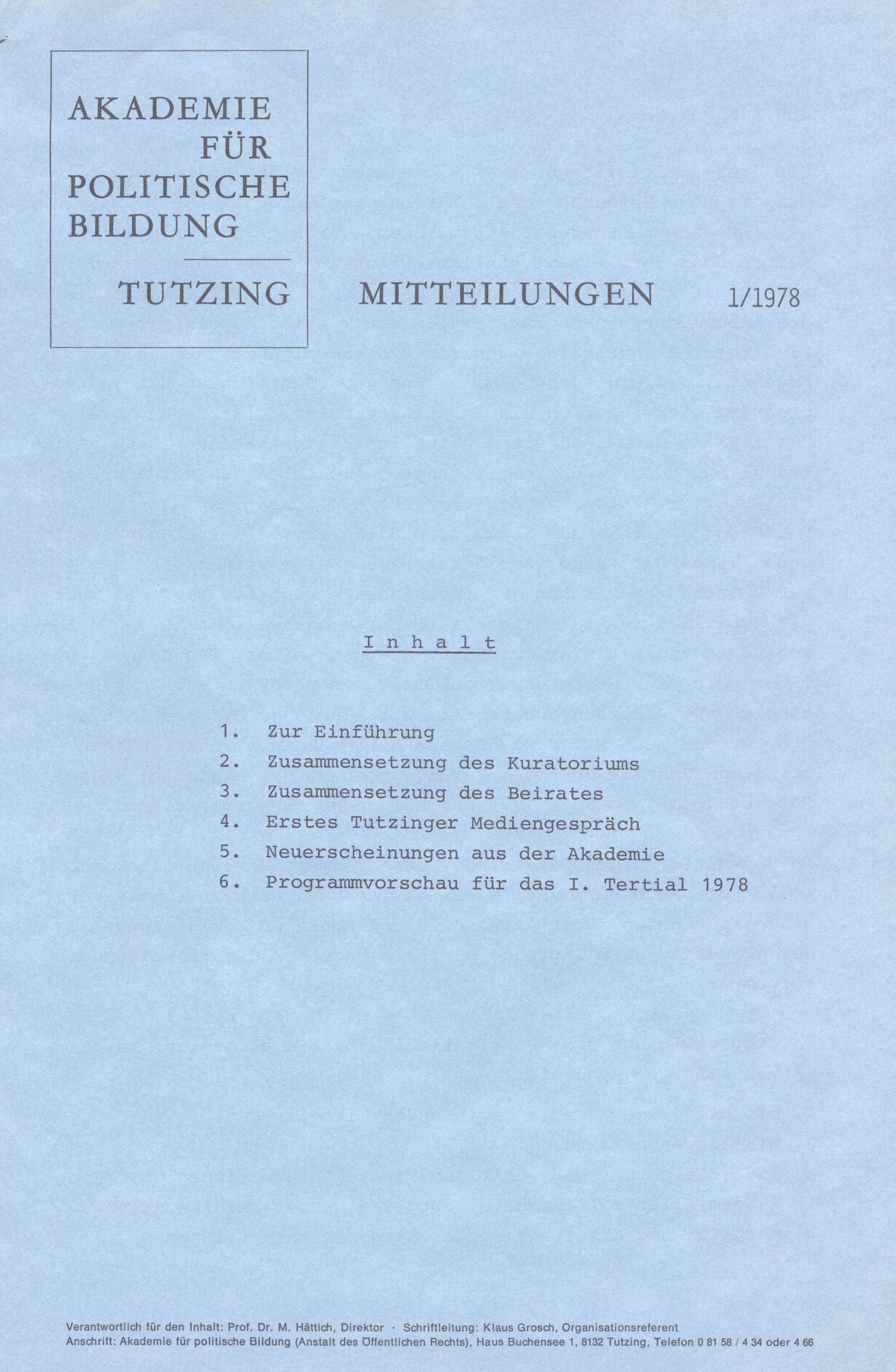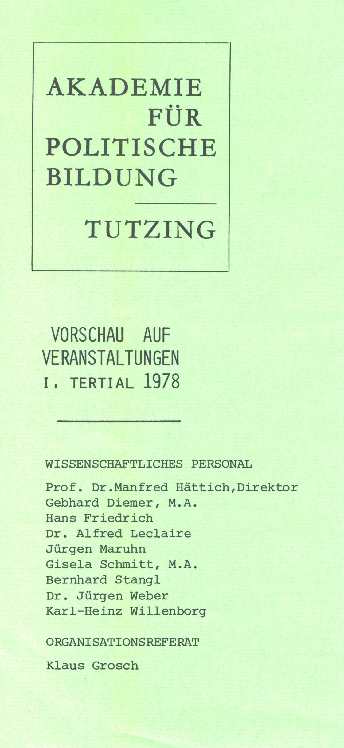 Die "Schriften der Akademie für Politische Bildung – Reihe B: Veranstaltungsprogramme" erstreckt sich über den Erscheinungszeitraum von 1959 bis 1975. Sie waren als Informationsbroschüren angelegt, die auf das kommende Veranstaltungsprogramm hinweisen sollten. Die insgesamt 33 Hefte der Reihe boten jedoch stets mehr als nur eine Übersicht über das jeweilige Tagungsprogramm. Im Jahr 1975 wurde die Reihe eingestellt. Aber die Notwendigkeit, für das aktuelle Programmangebot der Akademie zu werben, bestand natürlich weiterhin. Zu diesem Zweck wurden im Lauf der folgenden Jahre und Jahrzehnte sehr unterschiedliche Formate und Designs entwickelt und genutzt. Die wichtigsten Etappen finden sich nachstehend anhand von Beispielen vorgestellt.