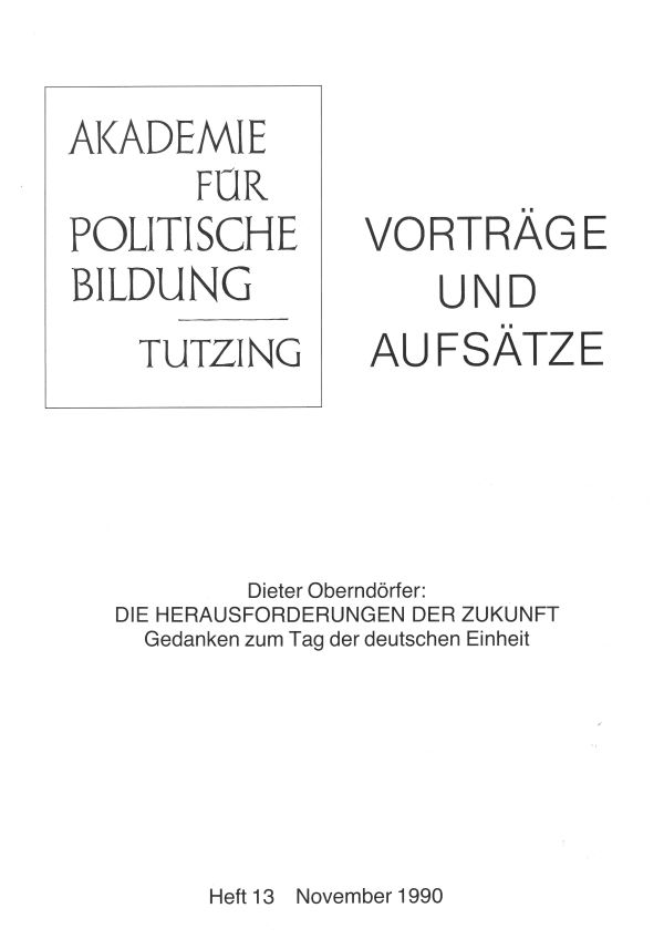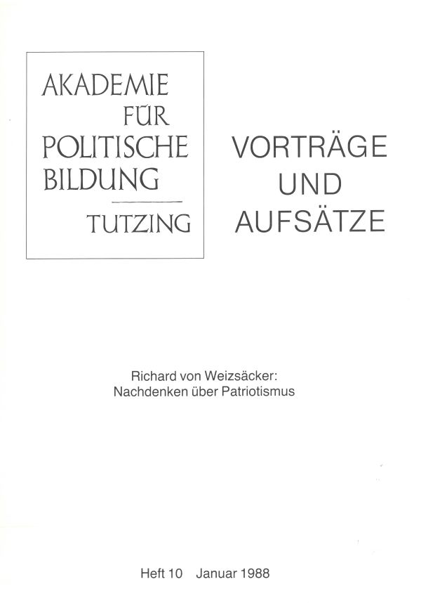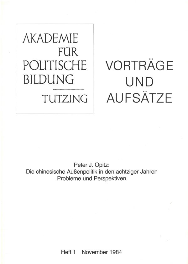 Ausschließlich Beiträge von herausragender Relevanz für die politische Bildung sollte die Publikationsreihe "Vorträge und Aufsätze" beinhalten. Sie wurde Ende 1984 eröffnet und fortan erschienen die einzelnen Heftausgaben in unregelmäßigen Abständen. Neben aktuellen Vorträgen fanden auch früher und andernorts publizierte Aufsätze von Politikern und Wissenschaftlern Eingang, um sie einem erweiterten Leserkreis zugänglich zu machen. Außerdem sollte dadurch ihre besondere Bedeutung für die politische Bildung unterstrichen werden. Was die äußere Form betrifft, so entschied man sich für Hefte im DIN-A4-Format und die Herstellung im reprofertigen Verfahren. Den Auftakt machte ein Vortrag von Peter J. Optiz zur "Chinesischen Außenpolitik in den achtziger Jahren", den dieser im Juli 1984 auf einer gemeinsam mit der Deutschen Gesellschaft für die Vereinten Nationen veranstalteten China-Tagung gehalten hatte. Einen Höhepunkt bildete die Rede von Bundespräsident Richard von Weizsäcker zum 80. Geburtstag von Dolf Sternberger unter dem Titel "Nachdenken über Patriotismus" (Heft 10), die im Jahr 1988 erschien. Sternberger hatte 1982 als Festredner zum 25-jährigen Akademiejubiläum seine berühmt gewordene Rede zum "Verfassungspatriotismus" gehalten. Aufgrund des besonderen Bezugs "zum Thema in Verbindung mit der geehrten Persönlichkeit", so Altdirektor Manfred Hättich, fand die bereits veröffentlichte Ansprache Weizsäckers Aufnahme in die Reihe. Mit dem Vortrag von Dieter Oberndörfer, damals Direktor des Freiburger Arnold-Bergstraesser-Instituts, unter dem Titel "Die Herausforderungen der Zukunft. Gedanken zum Tag der deutschen Einheit" (Heft 13) wurden die "Vorträge und Aufsätze" im November 1990 abgeschlossen.