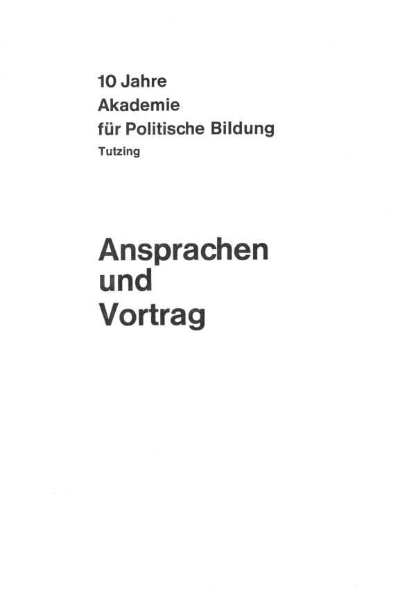 Ansprachen zur Eröffnung der Akademie für Politische Bildung am 21. Februar 1959 in der Aula der Universität München