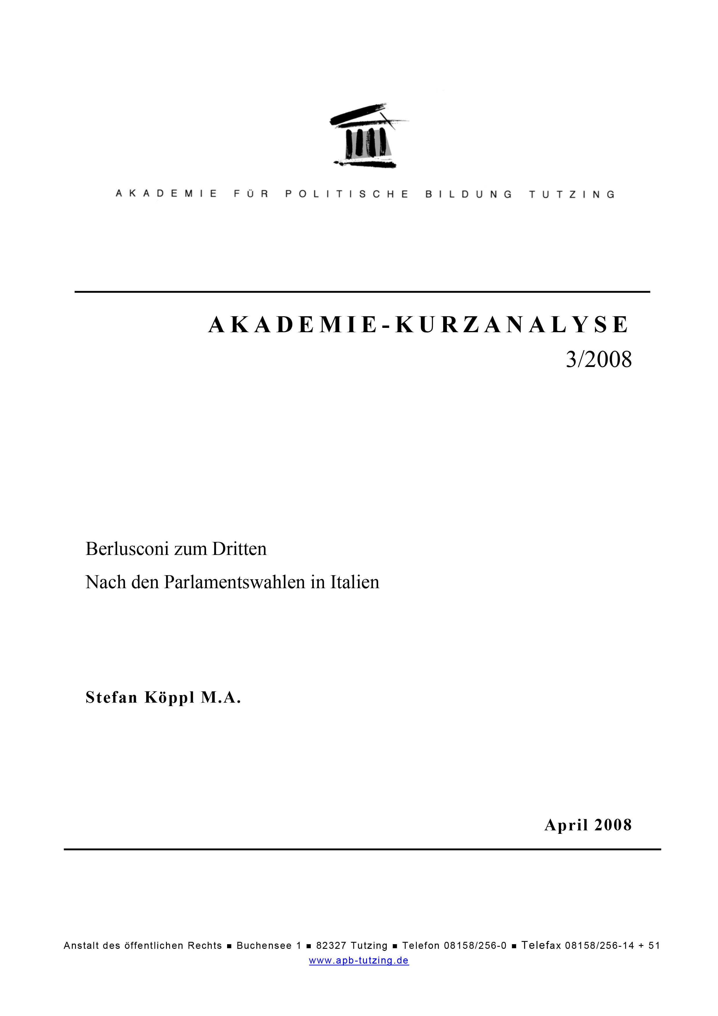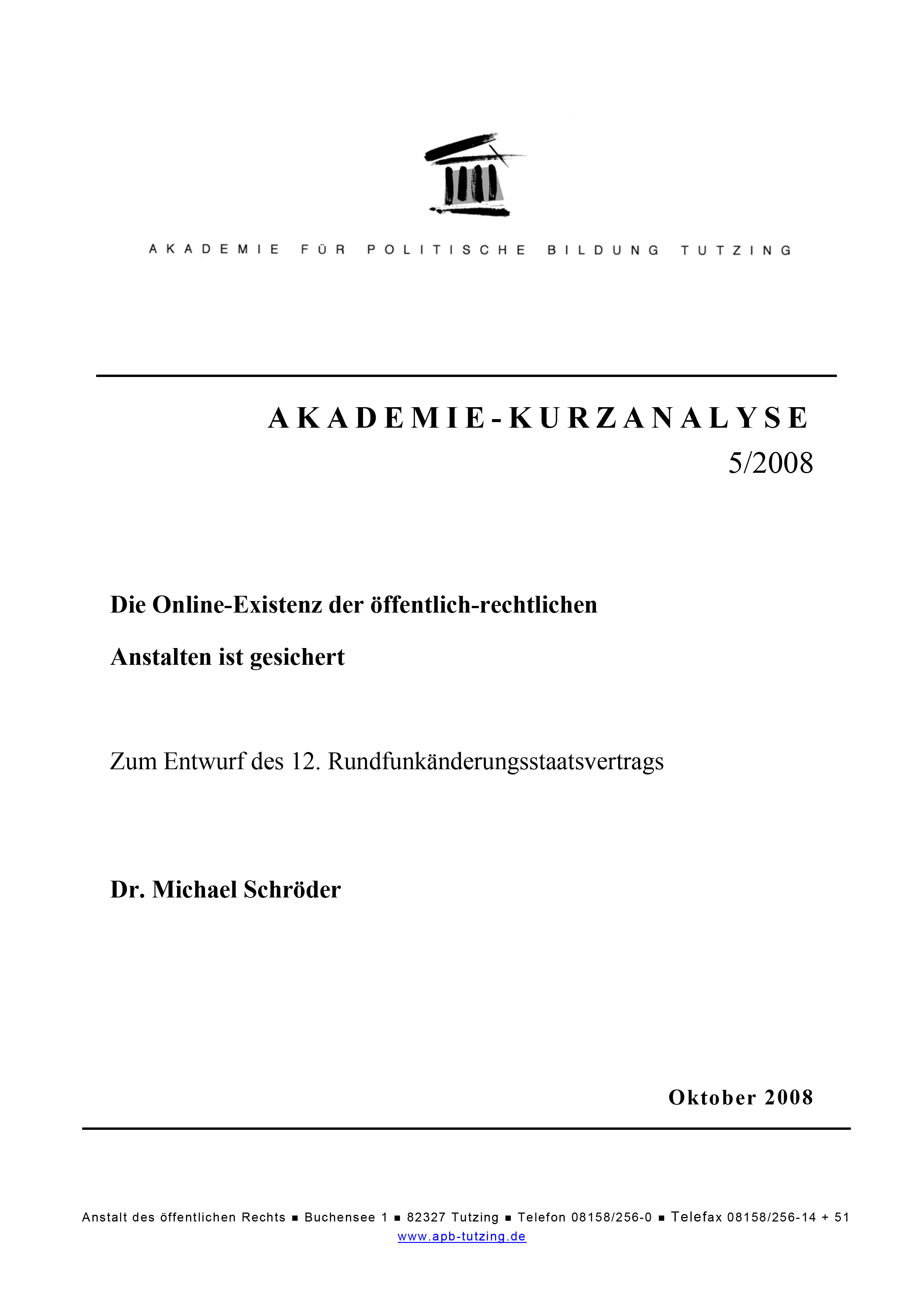 Tutzing 2008, Akademie für Politische Bildung, 5 Seiten