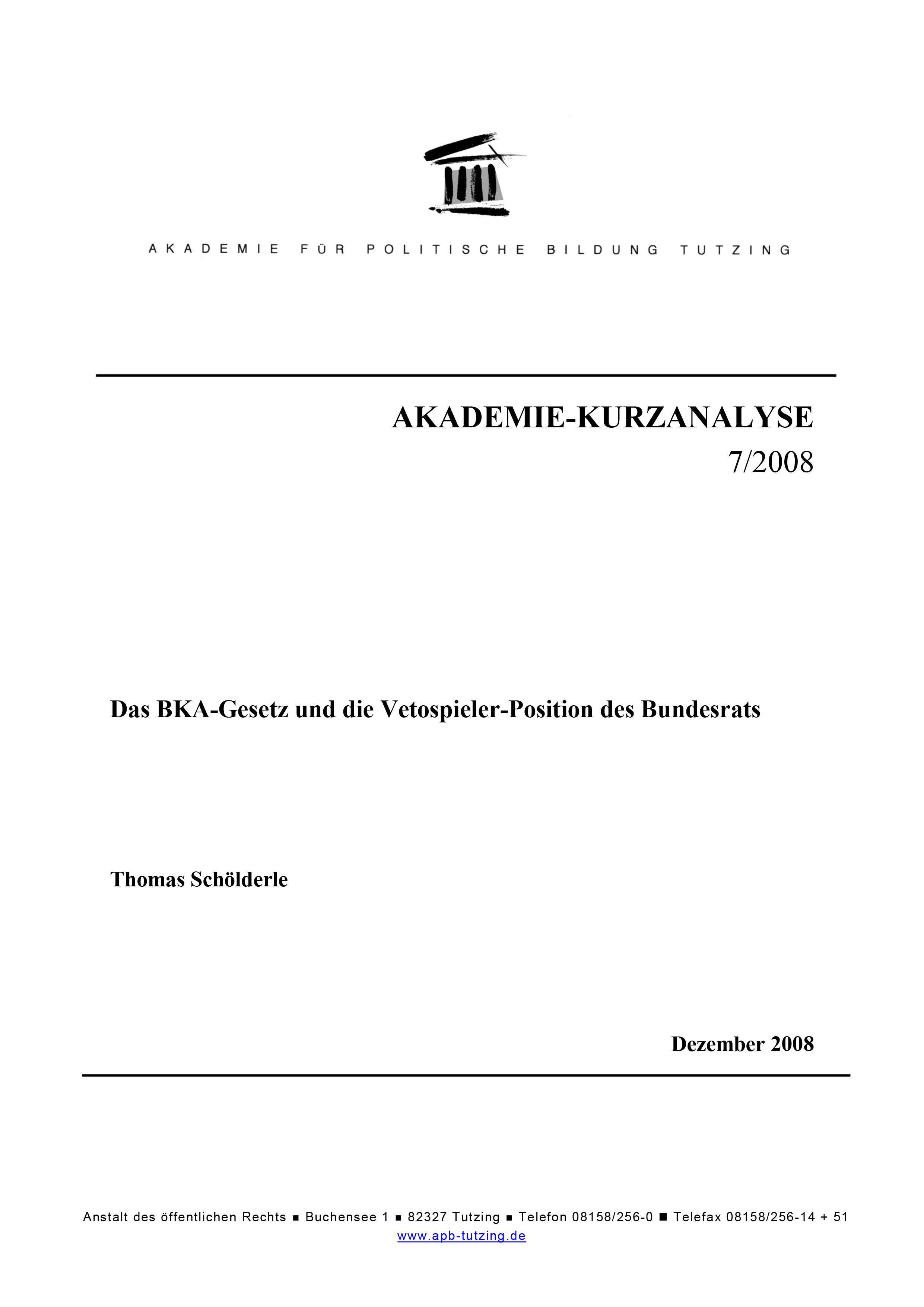 Tutzing 2008, Akademie für Politische Bildung, 7 Seiten