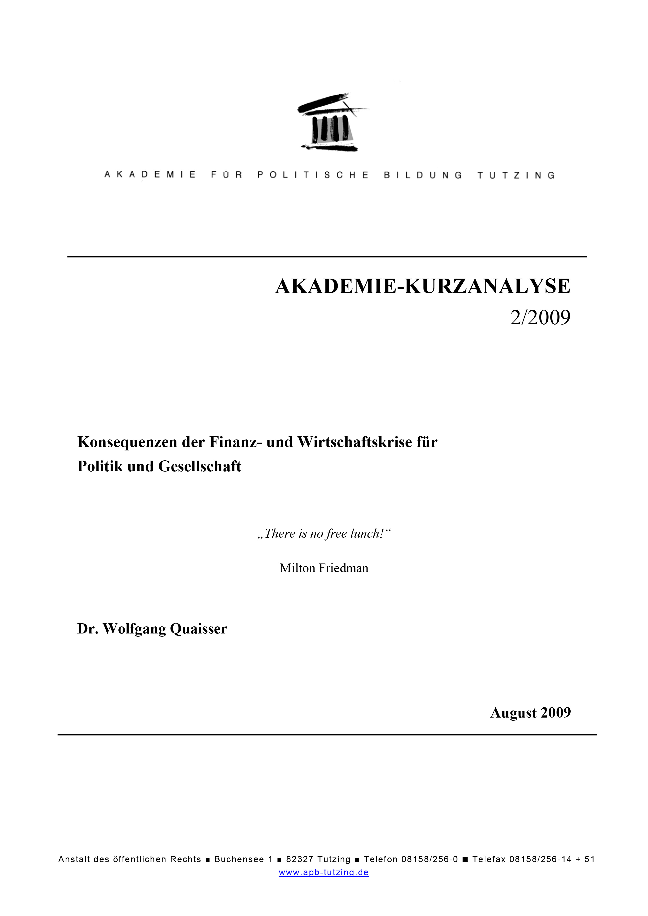Konsequenzen der Finanz- und Wirtschaftskrise für Politik und Gesellschaft